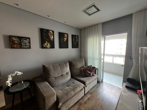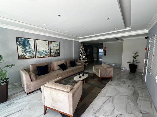Este apartamento em Praia Grande conta com 107,68m² de área, distribuídos em 1 suíte, banheiro social, sala espaçosa e 1 vaga de garagem.