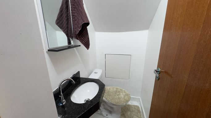 O formato de sobrado garante maior privacidade entre os ambientes sociais e íntimos, proporcionando mais conforto para toda a família.